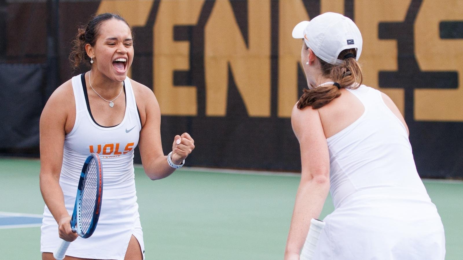 Nomor 20 Leyla Britez Risso meraih dua kemenangan tunggal pada akhir pekan untuk meningkat menjadi 12-0 di tunggal pada tahun 2026, termasuk skor 9-0 dalam permainan ganda. Rekan setimnya, mahasiswa baru Katrina Scottmeraih kemenangan peringkat pertama dalam karir perguruan tinggi di pertandingan hari Minggu, mengalahkan peringkat 23 Carolina Gomez Alonso, 6-0, 6-3.