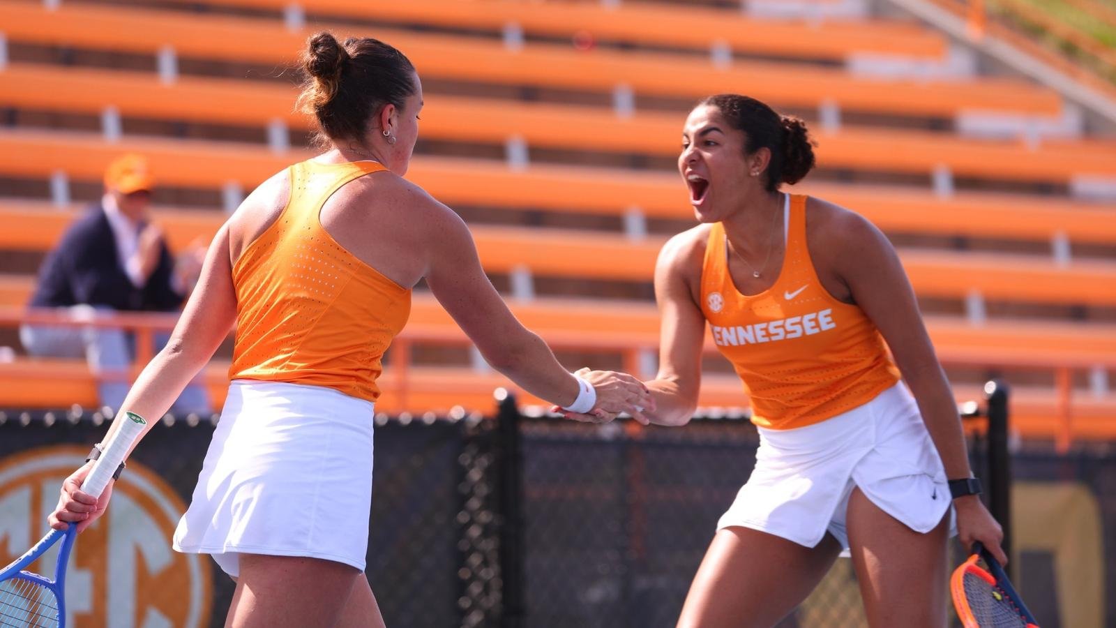 Menghadapi defisit 2-3, Tennessee membutuhkan kemenangan di lapangan satu dan lima. Pemain nomor 2 Aggies Lucciana Perez akan mengambil alih lapangan pertama dengan selisih 7-6 (8), 6-3, memastikan kemenangan 4-2 dalam ganda.