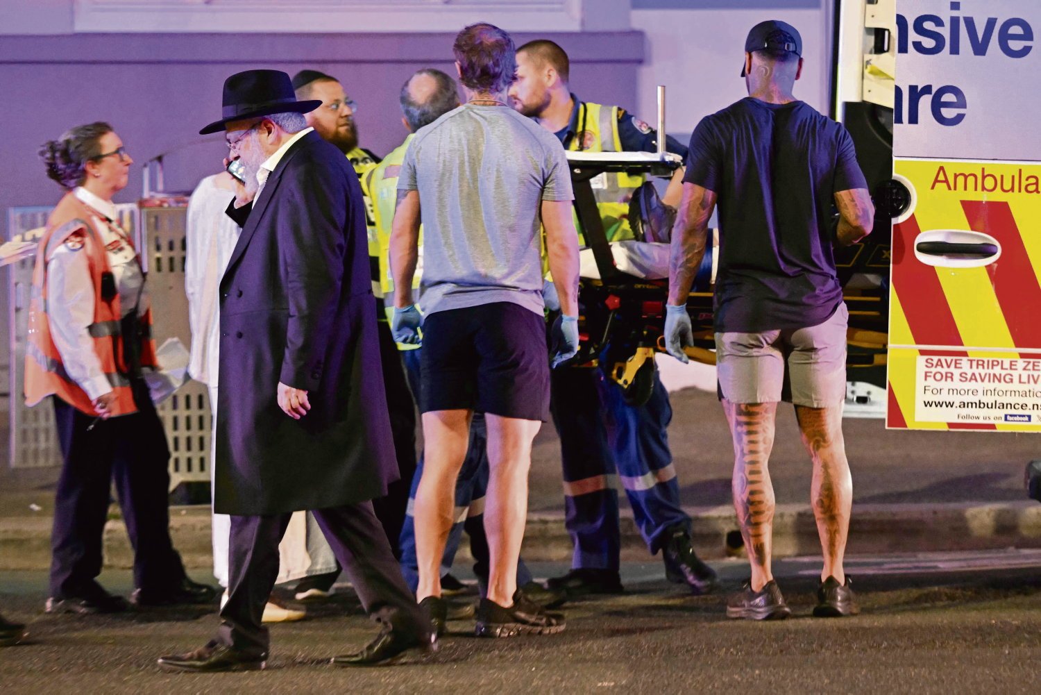 Menurut para saksi, dua pria berpakaian hitam yang dipasang di ponton di atas pantai Bondi yang terkenal menembakkan senjata semi-otomatis ke arah sekelompok pengunjung musim panas. Sedikitnya 15 orang tewas. Beberapa korban telah diidentifikasi: Rabbi Eli Schlanger, lahir di London dan berusia 41 tahun, termasuk di antara mereka, menurut beberapa media; Alex Kleytman, seorang penyintas Holocaust yang lahir di Ukraina, juga. Istrinya, Larisa Kleytman, mengatakan kepada media Australia Orang Australia bahwa dia telah dibunuh di sampingnya. Seorang gadis berusia 12 tahun termasuk di antara para korban, menurut salah satu direktur jenderal Dewan Eksekutif Yahudi Australia.