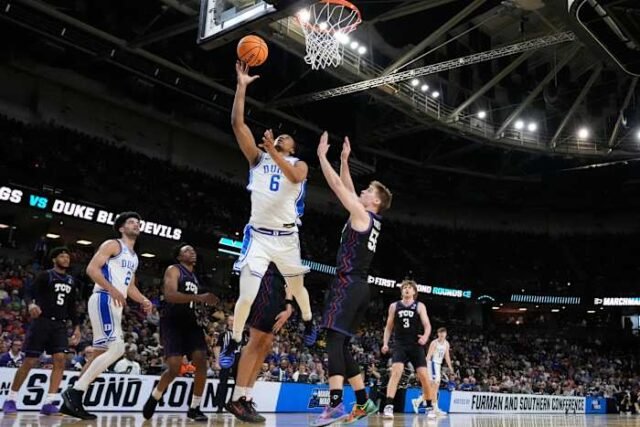 Setan Biru membuka turnamen dengan penampilan goyah yang tidak seperti biasanya yang membuat mereka hanya mendapat kekalahan ketiga 16-versus-1 melawan Siena. Kali ini, mereka hanya tertinggal sebentar di babak kedua dalam perjalanan ke Sweet 16 untuk musim ketiga berturut-turut di bawah Jon Scheyer, mendapatkan perjalanan ke ibu kota negara untuk menghadapi pemenang St. John’s-Kansas pada hari Jumat.