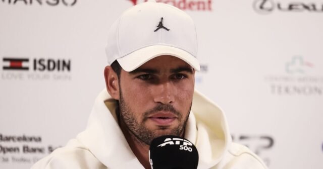 Carlos Alcaraz telah mengundurkan diri dari Madrid Terbuka minggu depan karena ia terus memulihkan diri dari cedera pergelangan tangan yang ia alami di Barcelona minggu ini. Petenis peringkat 2 dunia itu mendapat waktu istirahat medis saat ia menang di putaran pertama atas Otto Virtanen, namun menarik diri dari ajang ATP 500 sebelum pertandingan berikutnya. Dan dia sekarang akan melewatkan Masters 1000 mendatang di Madrid.