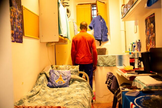 Pria itu selalu tersenyum, tatapannya kosong. Lengannya yang bersilang memperlihatkan tato yang setengah terhapus seiring berjalannya waktu. Ia menjelaskan dengan suara lembut bahwa ia telah berada di sini selama lebih dari setahun, setelah melewati lembaga pemasyarakatan Beauvais (Oise), kemudian Bapaume (Pas-de-Calais). Dari 25 tahun yang diterimanya, ia masih memiliki 5 tahun lagi untuk mengabdi. Rumah sakit? Dia juga tahu. “Tapi aku ditinggal sendirian…”. Penjara? “Saya tidak menjalani pengobatan dengan baik. Saya mengalami serangan kecemasan…”