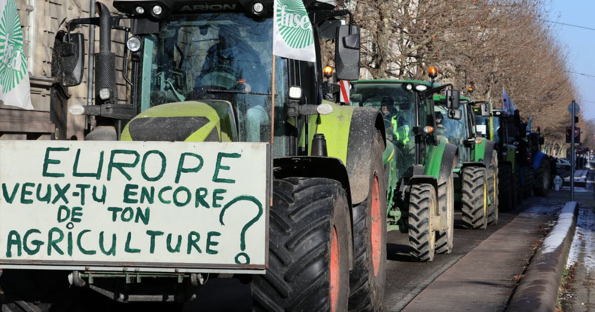 Dengan ratusan traktor mereka yang diparkir secara simbolis di sekitar Place de la République, beberapa di antaranya berisi jerami, para petani menyatakan penolakan mereka terhadap perjanjian perdagangan bebas antara pasar bersama Mercosur dan Uni Eropa yang harus ditandatangani pada 12 Januari. Alexis Losser, peternak di Mussig, mengecam persaingan tidak sehat. “Kita tidak akan kompetitif, ukuran struktur mereka sangat besar, kita mempunyai lebih banyak kendala untuk menghormati kesejahteraan hewan, dalam aturan fitosanitasi, perlindungan sosial mereka berbeda. Kita harus mempertahankan model pertanian kita.” “Mereka menggunakan hormon pertumbuhan yang tidak mungkin dideteksi dalam daging,” lanjut Gérard Lorber, presiden FDSEA 67. “Para politisi mengatakan bahwa perjanjian dengan Mercosur akan meningkatkan daya beli masyarakat Eropa. Namun makanan ada harganya. Konsumen harus tahu apa yang diinginkannya.”