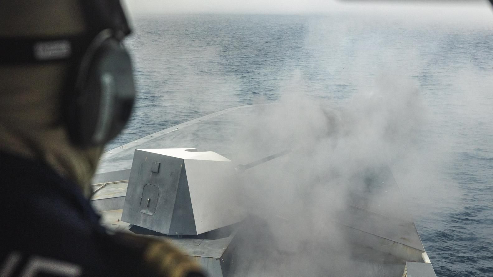 Fregat Normandie berlatih penembakan artileri