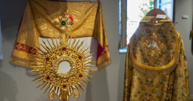 “Sacree expo”, di lantai atas Maison du Kochersberg, dapat membuat Anda takjub dalam lebih dari satu cara. Kami menemukan benda-benda simbolik seperti spanduk, kanopi atau piala, tetapi juga penjelasan tentang perdagangan yang sangat spesifik, misalnya menyulam pakaian mewah tersebut.