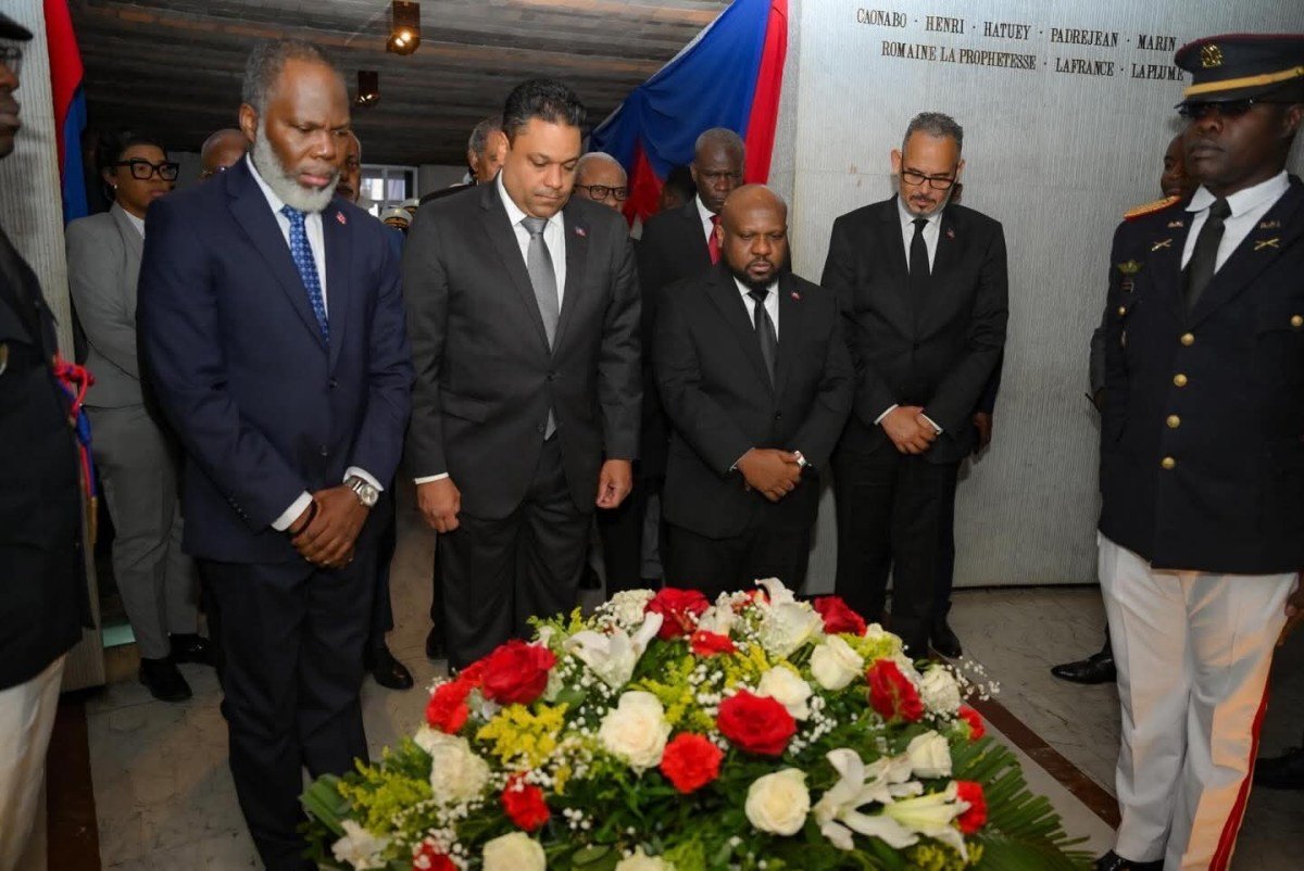 Perdana Menteri Alix Didier Fils-Aimé didampingi Presiden Dewan Transisi Kepresidenan (CPT) serta para Penasehat Presiden, Jumat ini, 2 Januari 2026, mengikuti upacara resmi memperingati Hari Nenek Moyang yang diselenggarakan di Museum Pantheon Nasional Haiti (MUPANAH).
