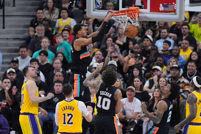 SAN ANTONIO – Keldon Johnson menyumbang 27 poin, Victor Wembanyama menambahkan 16 poin dan 14 rebound, dan San Antonio Spurs mengatasi 38 poin, 10 rebound, dan 10 assist dari Luka Doncic untuk mengalahkan Los Angeles Lakers 107-91 pada Rabu malam.