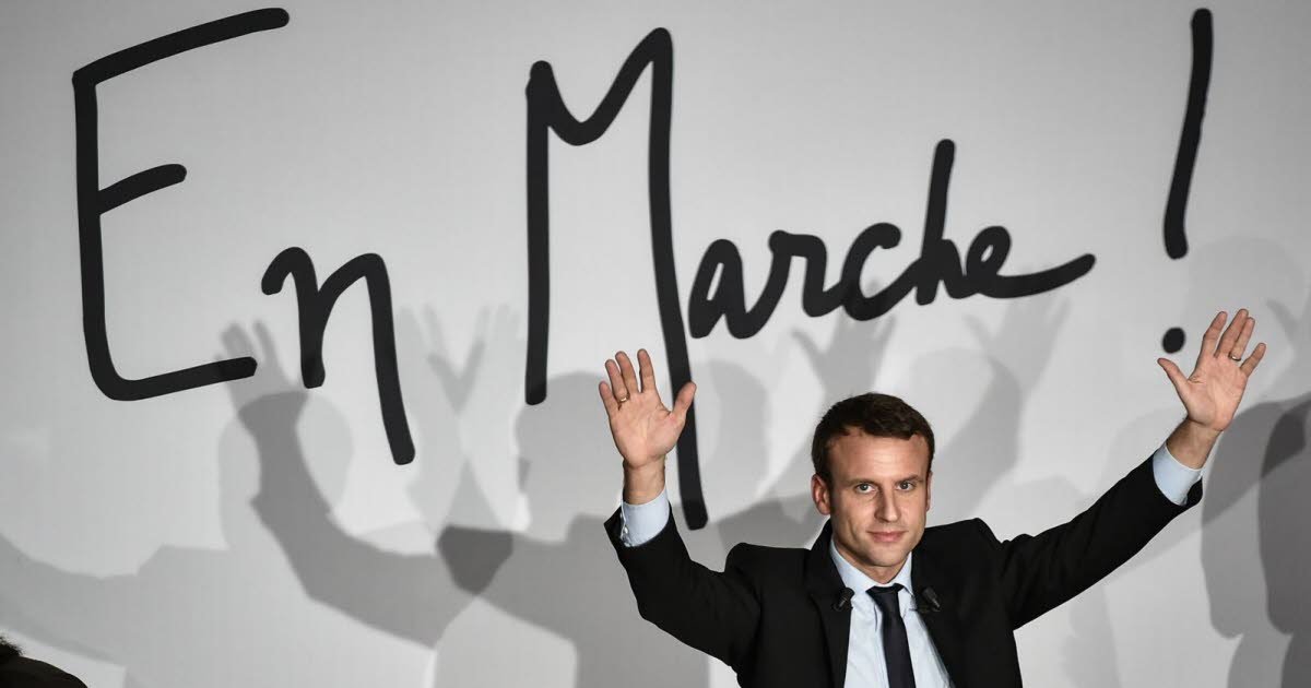 Pada tanggal 6 April 2016 di Amiens (Somme), kampung halamannya, Emmanuel Macron meluncurkan “gerakan politik baru”, En Marche, “yang tidak akan berada di sayap kanan, yang tidak akan berada di kiri”, memastikan bahwa pencalonan presiden “bukanlah prioritas saat ini”. Mantan wakil sekretaris jenderal kabinet François Hollande di Élysée, menteri perekonomian di pemerintahan Manuel Valls sejak Agustus 2014, mantan inspektur keuangan dan kemudian mitra pengelola Rothschild Bank semakin meningkatkan minat baik di dunia media politik maupun di kalangan opini publik.