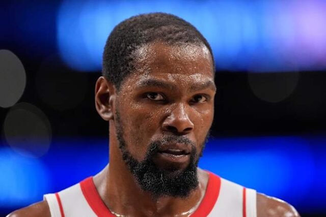 Durant, yang menjalani musim pertamanya di Houston setelah keluar musim dari Phoenix, adalah pencetak gol terbanyak kelima dalam sejarah NBA.