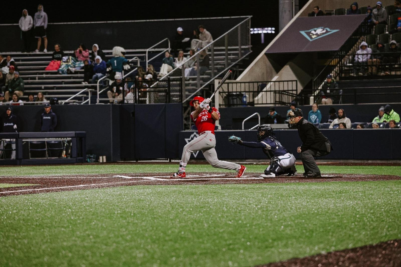 McHugh sekarang memiliki 29 RBI musim ini untuk menduduki puncak Wolfpack (17-4). Brayden Frassman mencetak 4-dari-5 dengan dua ganda dan dua RBI, sementara Brandon Novy mencapai home run ketiganya musim ini dan menyelesaikannya dengan tiga RBI. Rett Johnson terus unggul dalam memukul dan mencapai base, diakhiri dengan dua pukulan, dua RBI, dan dua run yang dicetak.