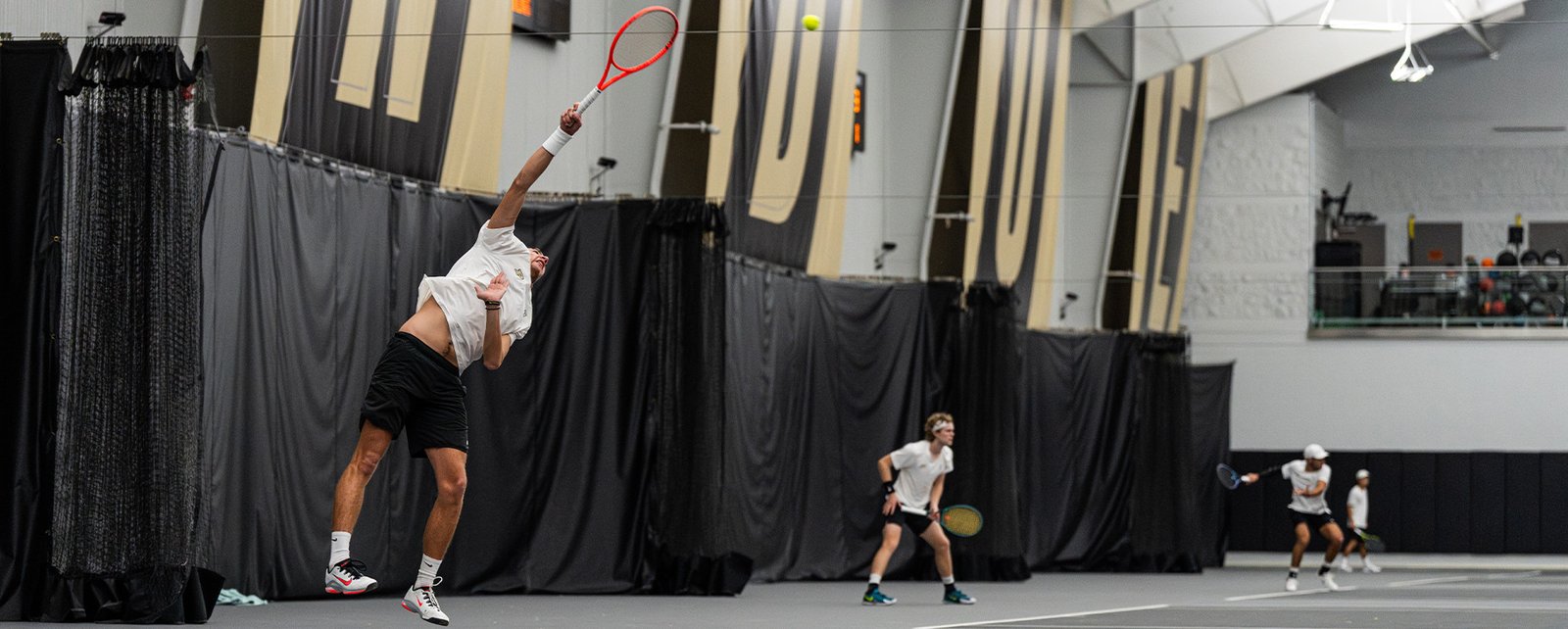 • Di posisi tunggal nomor empat, Jovic dengan tegas mengalahkan Jeff Leong 6–1, 6-2. Tak lama kemudian, senior Mujtaba Ali-Khan meraih kemenangan di posisi tunggal nomor enam melawan Finn Logue, 6-1, 6-2. Ini adalah kemenangan pertama Ali-Khan tahun ini, memastikan kemenangan Boilermaker.