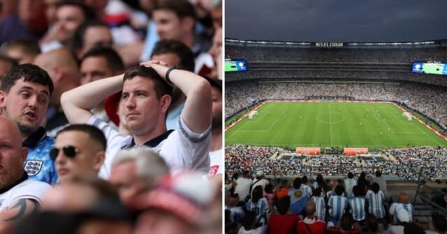 Penggemar Inggris akan dilarang berjalan ke stadion Met Life di Piala Dunia (Gambar: Getty)
