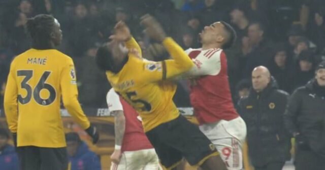 Gabriel Jesus kehilangan ketenangannya dan mendorong bek Wolves Yerson Mosquera saat peluit akhir dibunyikan dan Arsenal kehilangan dua poin dalam hasil imbang 2-2 di Molineux. Hasil imbang The Gunners memastikan gelar juara Liga Inggris kini ada di tangan Manchester City, menyusul hasil imbang liga kedua berturut-turut, akibat gol telat Tom Edozie di debutnya.