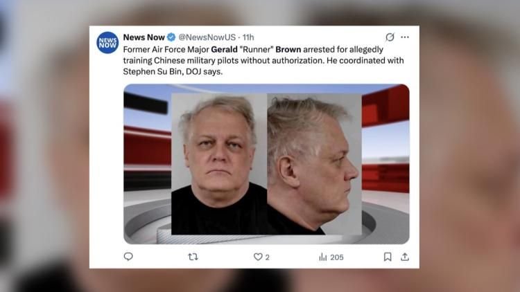 Seorang pilot pesawat tempur selama 24 tahun bersama pasukan Amerika, Gerald Brown ditangkap dan didakwa pada hari Rabu. Pria berusia enam puluh tahun, yang menghabiskan lebih dari dua tahun di Tiongkok