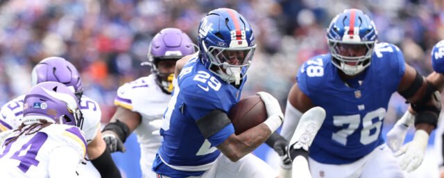 Tyrone Tracy Jr. memulai untuk game ketujuh berturut-turut dan memimpin Giants dengan 16 pukulan untuk jarak 71 yard. Dia mengadakan dua resepsi untuk tujuh yard. Tracy telah mencapai 70 yard bergegas dalam pertandingan berturut-turut dan empat kali dalam tujuh start berturut-turutnya.