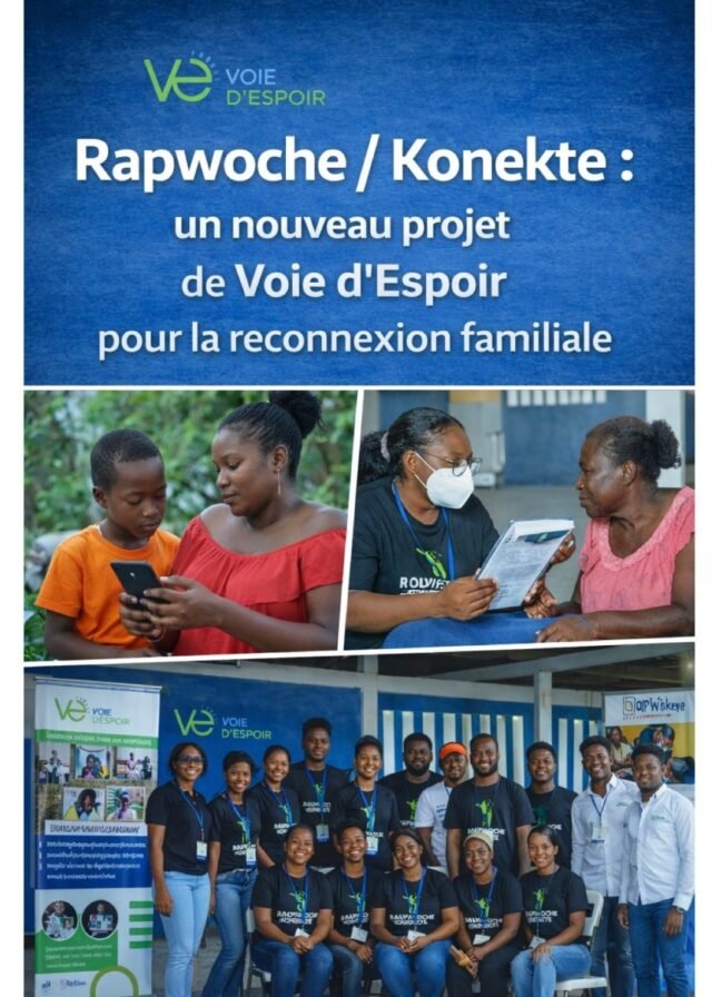 Organisasi Voie d’Espoir (VE) bertemu, pada tanggal 23 Februari 2026, lebih dari seratus keluarga kandung dalam upacara resmi yang diselenggarakan di Hotel La Cayenne, sebagai bagian dari implementasi proyek Rapwoche/Konekte. Inisiatif ini dilakukan bekerja sama dengan Plan Kiskeya, sebuah organisasi Belanda yang berkomitmen untuk mendukung anak-anak adopsi asal Haiti dan pencarian keluarga biologis mereka.