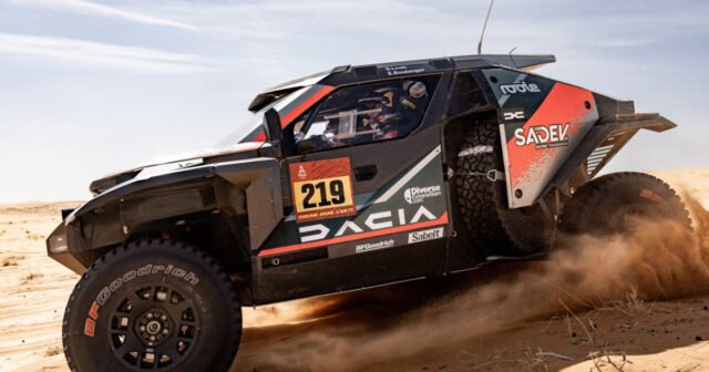 Etape ke-7, panjang 877 kilometer, termasuk 459 waktu, antara ibu kota dan Wadi ad-Dawasir tersenyum pada Mattias Ekström (Ford).