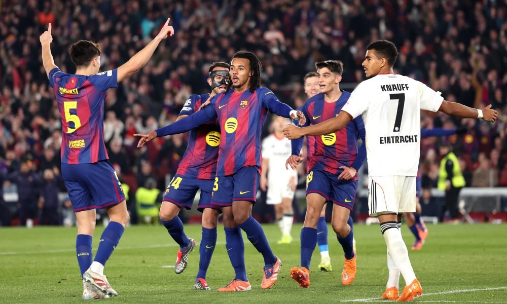 Hanya tiga menit kemudian, umpan silang Lamine Yamal yang relatif bandel melambung tinggi dan jatuh tepat ke wilayah Kounde.