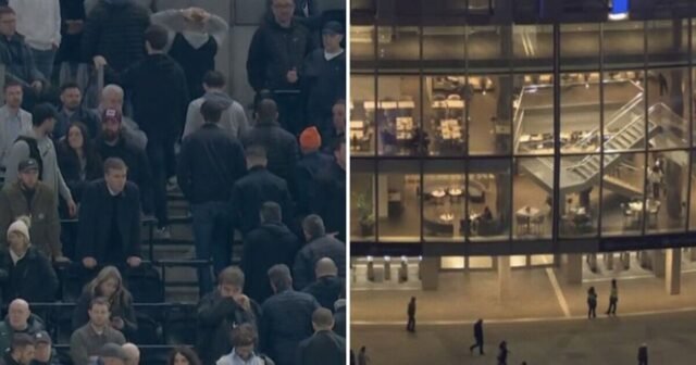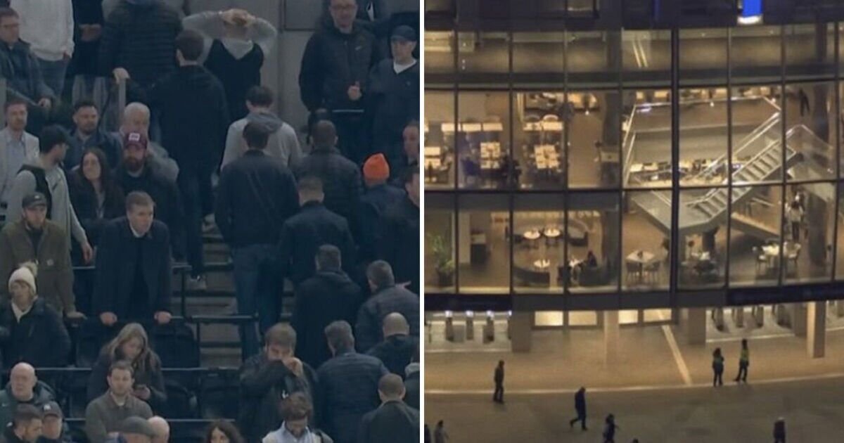 Penggemar Tottenham terlihat berbaris keluar stadion pada jeda pertandingan Liga Premier melawan Crystal Palace. Krisis tim London utara berubah dari buruk menjadi lebih buruk ketika mereka mengalami mimpi buruk di babak pertama melawan Palace, yang dipicu oleh kapten Micky ven de Ven yang mendapat kartu merah.