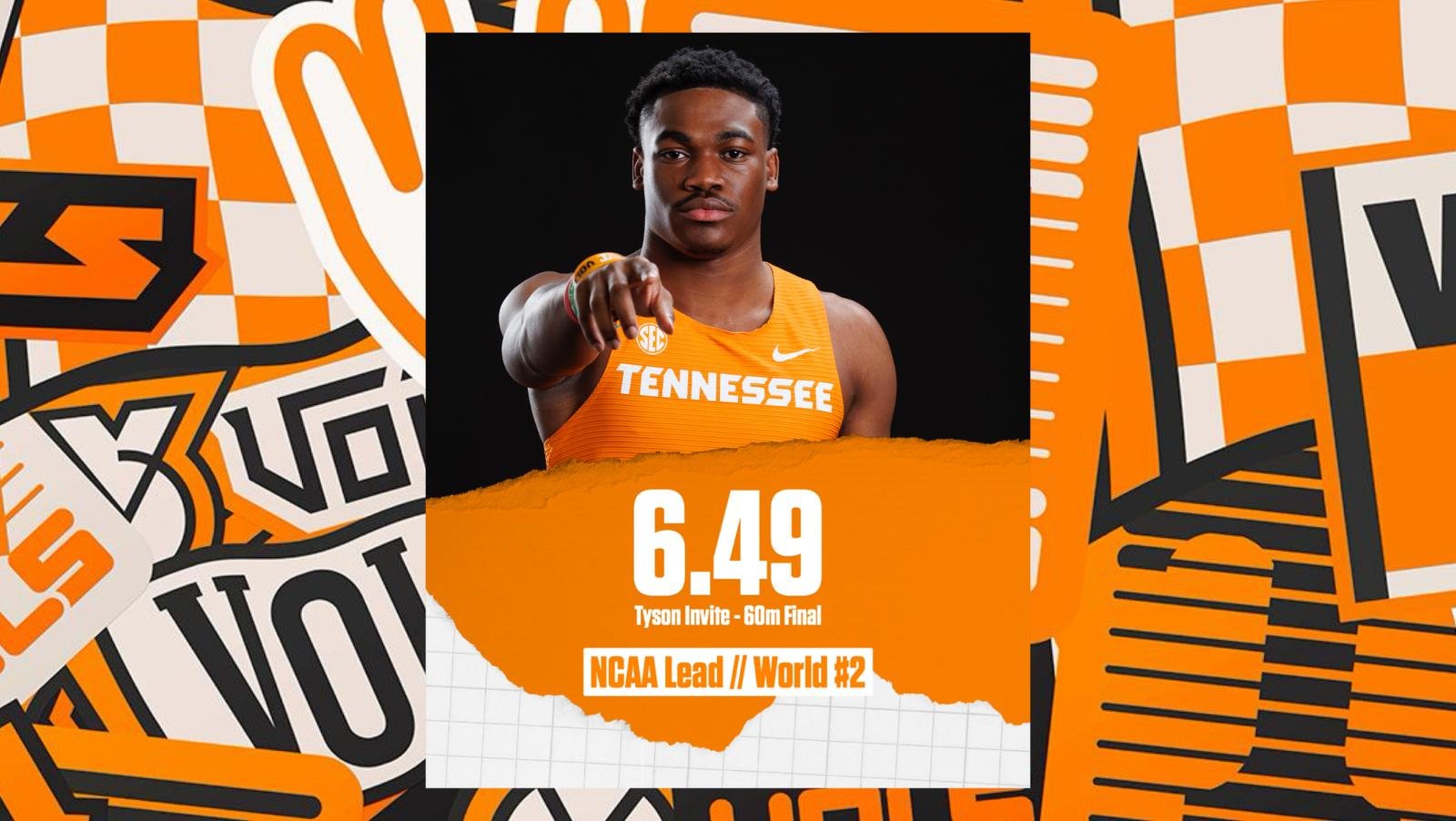 FAYETTEVILLE, Ark. – Pelari junior kaos merah Tennessee Traunard Folson menyamai waktu terdepan NCAA-nya dengan 6,49 detik dalam lari 60 meter putra pada hari Jumat, memimpin hari pembukaan yang kuat untuk Big Orange di Tyson Invitational. Folson menjadi runner-up di final kejuaraan, hanya tertinggal dari adidas profesional dan pemenang Bowerman Award 2025 Jordan Anthony, yang membukukan 6,43 terdepan di dunia.